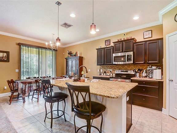 Pride of ownership shines in this well maintained, upgraded property on a conservation lot! Upgraded kitchen with granite counters, tile backsplash, stainless appliances, large closet pantry and breakfast bar with pendant lighting. Custom wooden blinds in Family Room & Dining area leading to covered patio facing conservation area. Kitchen opens to generous sized family room. Downstairs also has one bedroom and full bath as well as flex space that can be a formal living room, dining room or office/den. Master bedroom, three additional bedrooms, laundry room and large bonus room are located upstairs. Other upgrades include extensive crown molding, surround sound pre-wire. Silestone counters in all bathrooms, cabinets in laundry room, reclaimed water irrigation system, RainSoft water softener, covered patio and gutters. Landscaping/Lawn, Pest Control, Termite bond water softener and AC units (2 units with HEPA filters) have all been under maintenance contracts to keep them optimally performing. This community includes a tot lot, clubhouse and community pool with new pool furniture! Close to major highways, shopping, doctors and all attractions.
