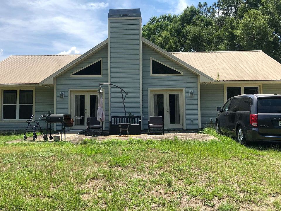 Beautiful home situated perfectly on 5 acres in Suwannee County! This home has an Oak hammock entrance, an extra large master suit, Pecan wood floors, large laundry room, stacked stone fireplace, Leaf Filter gutter system, new 82 gallon water tank, tankless water heater, 50 year metal roof, vinyl over concrete block construction, poured concrete forms around windows and doors, and so much more! This one is a must see! Aluminum handicap ramps are not included in sale as well as smeller shed.