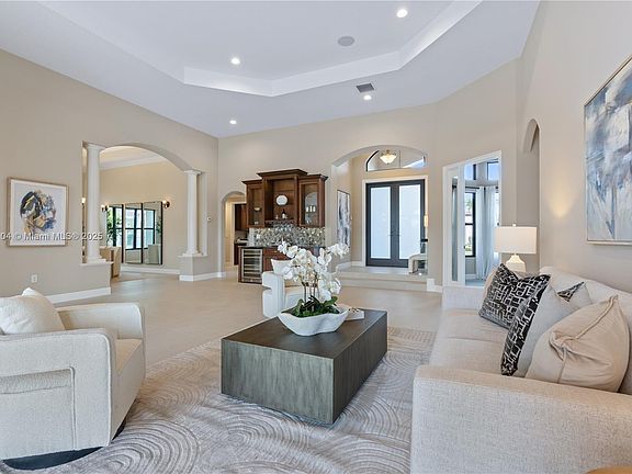 Welcome to an exquisite estate nestled within Davie's prestigious gated community of Riverstone! This renovated home sits on the lake, and consists of 5 bd's, an office, and media room (7 total). Stunning chefs kitchen, custom Italian flooring, custom primary closets, renovated bathrooms (including his/hers baths), and a perfect entertainment space outdoors with a pool, outdoor kitchen, and tiki hut! Impact windows/doors. Truly a gem in such a sought after community! TOP rated schools, close access to all major highways, shopping, grocery stores and dining, as well as a well maintained community. Community amenities include tennis, basketball and pickleball courts, in addition to pavilion & playgrounds for kids. Easy to show! Call listing agent for all questions!