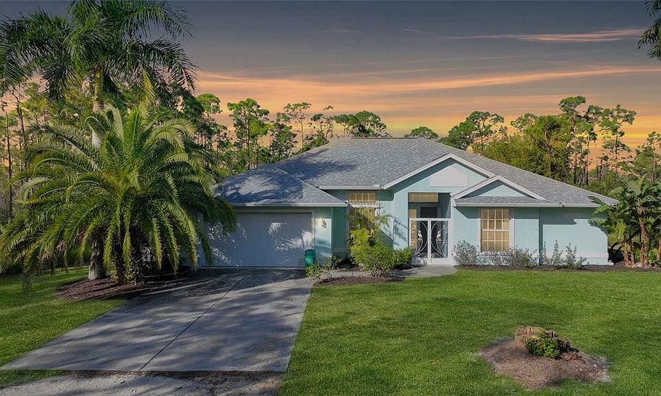 Nestled on an expansive 6 acres of wooded land, this home seamlessly combines ample space with serene tranquility, providing the perfect setting for your dream property. This custom-built, Tim Towles home, features 3000+ total sq ft. with 3 bedrooms, 2-bathrooms, + Bonus room & Pool with HUGE lanai area. Step into the comfort of 2,217 sq ft of air-conditioned living space, with brand new French doors and a soaring 15ft ceiling, setting the stage for an exceptional living experience. The thoughtfully designed great room floor plan, is an entertainer's delight and offers a spacious and inviting atmosphere. What makes it truly special? Picture 30+ feet of sliding glass doors gracefully leading to the lanai, creating an effortless blend between the indoor and outdoor space. This is more than a home, it's an invitation to a lifestyle of sophistication and relaxation. Formal dining is oversized and sits adjacent to the kitchen which features breakfast bar seating, plenty of cabinet and counter space, appliances, a large pantry and desk area. Inside laundry includes washer & dryer, sink, and closet. The living room boasts volume ceilings, oversized windows and sliding glass doors leading to the lanai. The owner's suite unveils a private sanctuary with lanai access and tranquil pool views. Ensuite bath offers a touch of luxury with a soaker tub, separate walk-in shower, double vanities, and a private commode. Bedrooms 2 and 3 share the main bath with a large vanity and tub/shower combo. Spectacular outdoor oasis featuring an oversized 49' x 24' screened lanai and pool area that's perfect for soaking in the Florida sunshine. Plenty of room to add an outdoor kitchen in the covered lanai while enjoying the beautiful views of the trees and nature. 2 Car Attached Garage and a 20’ x 20’ metal carport with concrete pad offers an ideal space to keep your valuables shaded and secure. The home comes equipped with a Well and Septic System. Other added features of this home include hurricane shutters, a 2-year-old shingle roof, well house with metal roof, newer pool cage and screen, tropical landscaping throughout with fruit and palm trees, irrigation system, whole house generator fully hooked up and more. Zoned RE1 with no deed restrictions or HOA fees. Located in Deer Pass Acres Subdivision, a private road with only approximately 20 owners. This home is a rare gem that captures the essence of country living, while being close enough to town for convenience. Only minutes up the road is Safe Harbor Burnt Store Marina providing a full-service gulf access marina, open to the public. You can now turn your dream of a perfect day on the water into a reality. Additionally, you can enjoy the on-site waterfront dining restaurants and entertainment, a fitness center, executive golf, tennis, pickleball, and much more. Call today to schedule an appointment to see this beautiful piece of paradise!