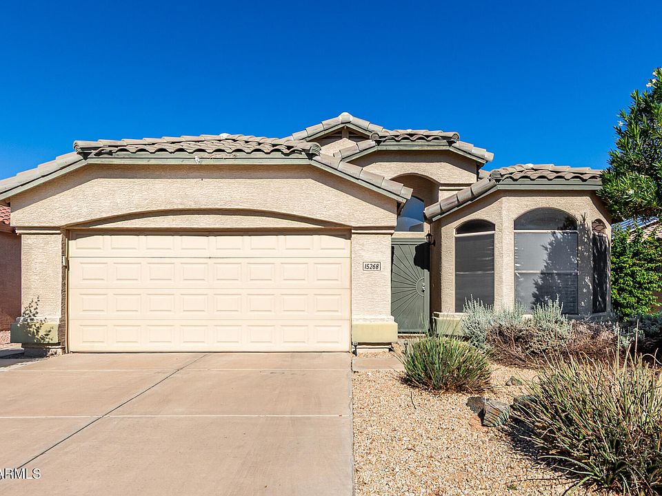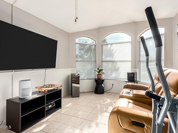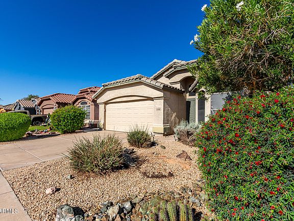 Discover this charming single-level 3-bedroom home plus a versatile office/den in the family-friendly community of Kingswood Parke. A welcoming living room with a vaulted ceiling sets the tone upon entry. The office/den features a double-door entry, bay window, and elegant wainscoting—perfect for work, hobbies, or a TV room. The updated kitchen boasts granite countertops, upgraded cabinetry, and an island ideal for prep or serving and it opens seamlessly to the family room, which offers direct access to the backyard. Stylish wainscoting continues through the main living areas, adding character throughout. The spacious primary suite includes a large walk-in closet with built-in organization and a private bath complete with dual sinks, a soaking tub, and a glass-enclosed shower with a convenient door leading to the backyard. The home also includes an indoor laundry room with shelving . The sprawling backyard features a covered patio, extended concrete slab, mature shade trees, and no neighbors behind for added privacy. With plenty of room for future landscaping or even a pool, the possibilities are endless. Enjoy easy access to the 60 & 303 freeways, plus shopping and dining just minutes away. Experience the perfect blend of small-town comfort and proximity to Phoenixonly about an hour away!