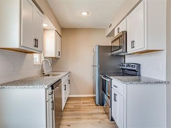 Beautiful newly renovated 2 bedroom 1 bathroom apartment in Wichita. The apartment features quartz countertops, tile backsplash, luxury vinyl flooring, and neutral finishes. Kitchen appliances including refrigerator are provided. Tenant pays Water and Electric. An additional fee of $15 is applied for Trash Services.