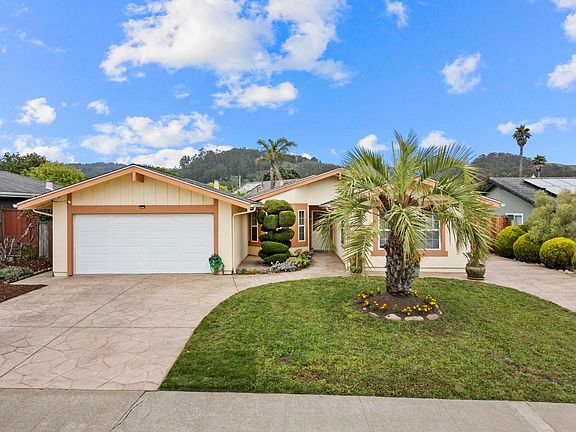 Charming ranch-style home nestled at the end of a quiet cul-de-sac on an oversized 7,000 sq/ft lot. This 3-bedroom, 2-bath gem features a spacious living room with a cozy fireplace, perfect for gatherings. The primary suite offers comfort and privacy, while two additional bedrooms provide flexibility for guests or a home office. A modern open concept kitchen opens to a breakfast nook and dining/family room. Enjoy a beautifully landscaped, drought-tolerant backyard with two planter boxes ideal for gardening or relaxing outdoors. Recent updates include custom stamp driveway, new carpet, fresh interior paint, and new closet doors. Located just minutes from major transportation routes, the vibrant shops and restaurants of downtown, and the stunning beaches of Half Moon Bay. A wonderful blend of comfort, convenience, and coastal living!