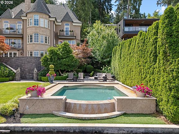 Welcome to an extraordinary waterfront retreat on Oswego Lake—where European-inspired charm, modern luxury, and effortless lakefront living come together in perfect harmony. Tucked behind an incredibly private entrance, this remarkable estate feels like a hidden French villa, offering serenity, style, and timeless elegance from the moment you arrive. Warm and inviting areas flow into a cinematic courtyard with European flair—ideal for alfresco dinners, lively gatherings, or peaceful moments of escape.Outdoors, one of the best settings on the main lake awaits. Life unfolds across a rare, level double lot along the water’s edge. Enjoy a travertine sport court, lakeside outdoor kitchen, boat house, fire-pit, pool, and expansive entertaining spaces—your own private lakeside oasis. The home offers a gourmet chef’s kitchen opening to a grand great room and formal dining space, a refine library, beautifully appointed ensuite guest rooms, and a stunning Owner’s Suite with soaring vaulted ceilings. Most of the rooms offer extraordinary lake views. Designed for both fun and relaxation, you’ll also find a bonus recreational room with a soundproof music studio, a lower-level family room with a full bar, a 600-bottle wine cellar, a gym, and a serene indoor/outdoor spa.Two separate ADU/apartments within a detached garage provide wonderful flexibility for hosting guests, extended family, or staff. Elevator access connects the garage and apartment directly to the main home, with a second elevator serving three levels inside for effortless living throughout.Every detail of this estate reflects incredible quality, detail and thoughtful design, including a full earthquake retrofit completed during a comprehensive renovation in 2008. This is more than a home—it’s a lifestyle, a retreat, and a legacy property. One of Oswego Lake’s most unique and unforgettable residences.Resort Living on Lake Oswego’s Fabulous Waterfront and a Fantastic Price!