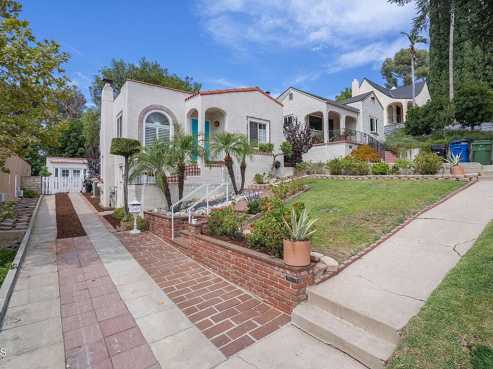 Nestle into this classic Spanish gem. Offering 2 bedrooms and 1 bath, this lovingly maintained home has received modern upgrades while retaining its original charm. Featuring white oak floors throughout, tiled bathroom, period black and white fireplace, casement windows with plantation shutters, a stunning Palladian window and French doors showcasing the dining room. These are just a fraction of its offerings. The interior living space is rounded out by a spacious kitchen with newer appliances, fixtures and a custom drop down prep counter. Recently converted garage to bonus room gives additional studio/office space in a polished, temperature controlled setting already hardwired with Ethernet. Large basement with laundry and additional storage. Outside features a large, private backyard with a courtyard feel. Outdoor lighting, a spacious newly built deck with retractable canopies and mature trees make for the quintessential LA experience. Entertain, dine al fresco, make it your outdoor office space - the possibilities are endless. Well placed hill home with views down the hill and excellent walkability to shops and eateries on Colorado Blvd. In the highly desirable Dahlia Heights Elementary School area.