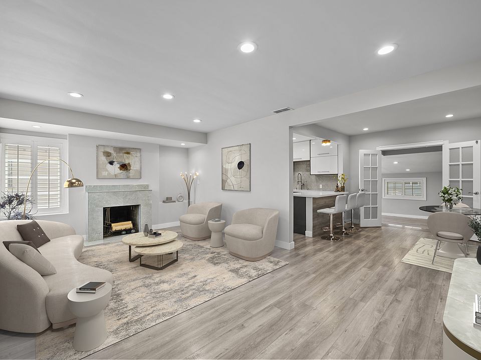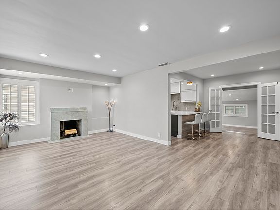 Cozy fireplaceTwo driveway parking spacesFamily roomQuartz countertopsOpen-concept floor planStainless steel appliancesStylish kitchen