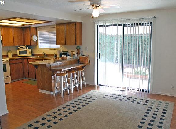 One-level living with laminate floors in main living areas. Spacious living room and formal dining area. Three bedrooms, two full baths. Kitchen with eat bar opens to family room. Slider to easy maintenance backyard with covered patio and decking. Newer roof. Sale includes refrig, wash/dryer. Great location near Intel, shopping, etc.