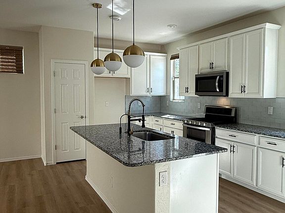 Welcome to Cobblestone Villas, a community conveniently located in the heart of Gilbert. This 3-bedroom, 2.5-bath home has ample space at 2,267 square feet. Features include new luxury vinyl plank flooring throughout, new carpet in bedrooms, new interior paint job, granite island kitchen, laundry with built in cabinetry & shelving, great loft space, The primary bedroom is oversized w/ensuite bath(dual vanities, soaking tub, separate shower, spacious walk in closet. Professionally landscaped yard with turf pavers, raised garden area, covered patio area with 2 ceiling fans. Upgrades include water softener, garage cabinets and workbench, top down/bottom up blinds, ceiling fans, pull out drawers in lower kitchen cabinets / high end sliding door to close off office space with built ins!