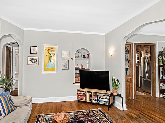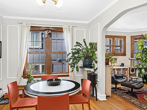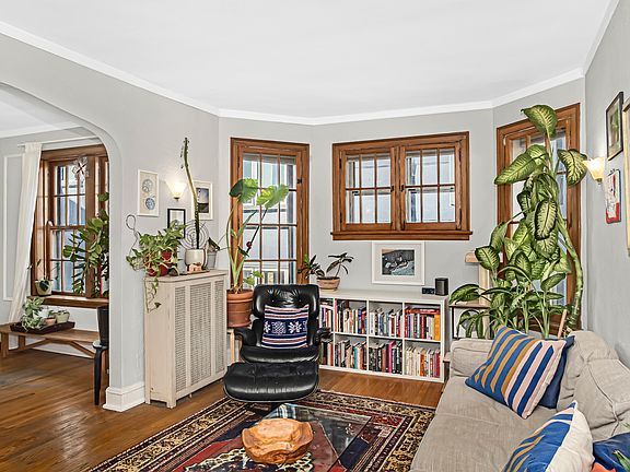 Fantastic vintage 1 bedroom condo with wonderful original features. Arched doorways, detailed mouldings, hardwood floors, exposed oak woodwork, glass front built-ins, original divided light windows, a quaint back porch and more. Huge closets, generous room sizes, and a kitchen that blends original built-ins with IKEA cabinetry and counters and all newer appliances. A very special unit and building on a gorgeous atypical East Rogers Park block almost exclusively single family homes with huge mature trees only blocks from the lakefront, shops and beach. Easy street parking and access to public trans, professionally managed building, large storage lockers, laundry and bike storage in the building, and a charming shared backyard and patio. Available end of January 2024. Own for less than rent! Cats allowed.