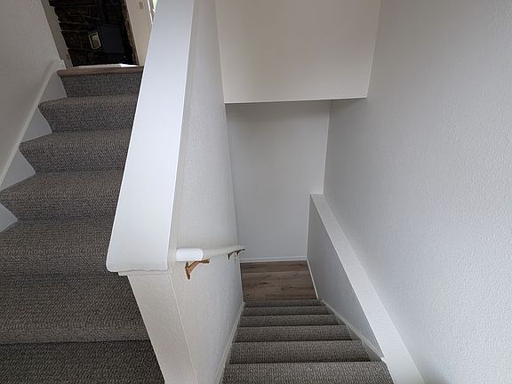 Electric fireplaceBalcony spaceNew flooring and paintCommon yard spaceSingle car attached garageRoof covered driveway areaFull kitchen