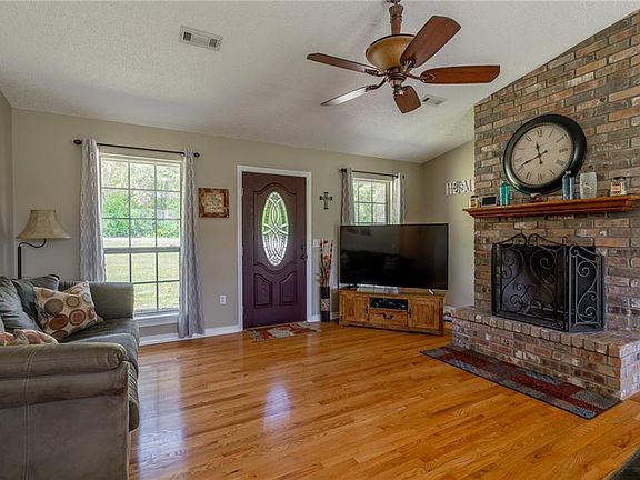 Nice 3Br-2Ba home in excellent condition on .65 acres only 0.7 miles from Hickory Creek State Park (includes a marina, boat ramp, swimming & picnic area) on Beaver Lake! Enjoy the peaceful views of open pasture and natural beauty from the back screened in patio! Kitchen has granite counter tops and stainless steel appliances. New interior paint. Primary bedroom with ensuite bath that has soaker tub and walk-in shower. Hardwood floors (real 3/4" hardwood) in the living room, hall & bedroom. Nice wood burning fireplace in living room. Dining area with nice views of the pasture land. Spacious laundry room. New roof in 2014. Newly landscaped with a variety of roses. Large vegetable garden (newly tilled and ready to be planted!). Nice newly painted storage building. Extra concrete slab could be utilized for additional outdoor living space (BBQ station or gazebo??). Quiet and peaceful area with country atmosphere and close to town (shopping) & play (lake). A great place to call home!