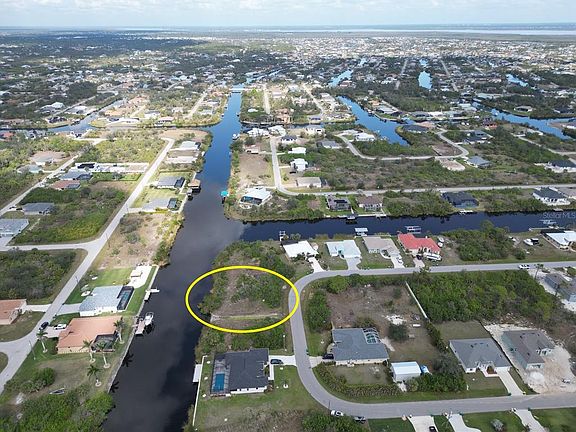 Waterfront Lot For Sale with 99 feet of shoreline with three bridges out to open water. The property has a western rear exposure giving you sunset views over the President Waterway. All utilities are in place making this a prime location to build your new home. The community offers multiple parks, sidewalks, playground, public boat ramp and over 50 miles of navigable waterways for your enjoyment. The property is roughly 20 minutes from the beaches on Boca Grande Island or Manasota Key, 15 minutes from shopping / dining and 10 minutes to over six semi-private golf courses. Build your dream home or hold as an investment, but either way Secure Your Piece of Paradise Today.