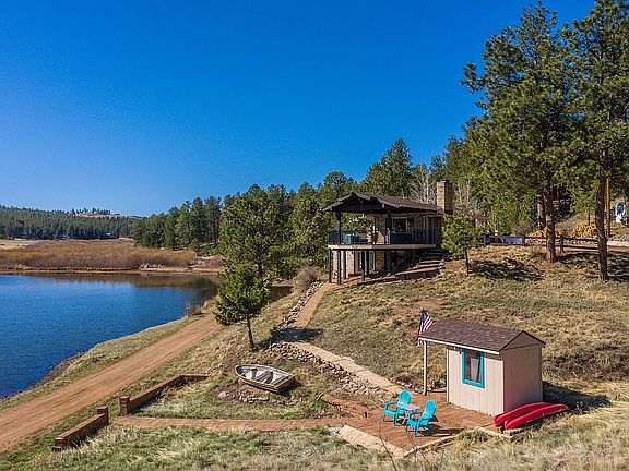 Rare opportunity to own this stunning cabin at Westcreek. This lakefront home has been extensively renovated, including new windows, doors, kitchen, composite decks, floors, lighting, bathroom, water heater, upgraded electric and plumbing. A new roof in 2019. It is located 14 miles from Woodland Park and 10 miles to Deckers. Bring your ATVs and your fishing rods. The ATV trails are minutes away. The lake is stocked! Measurements TBV Buyers agents are welcome. https://youtu.be/EZvtfHB2guk