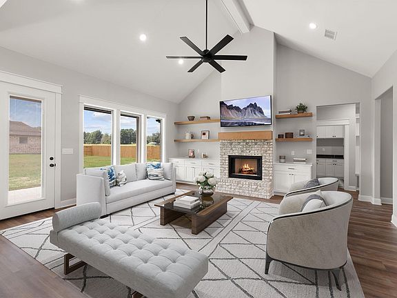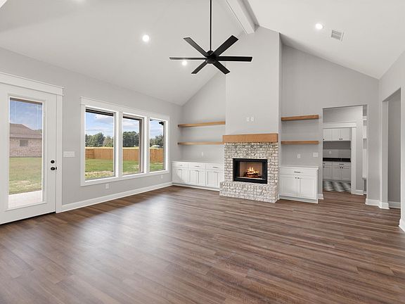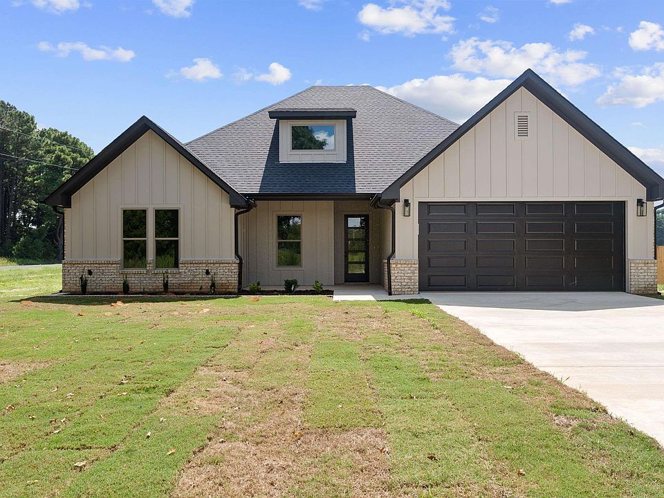 Welcome to this charming new construction home located on CR 1100 in Tyler, offering both comfort and convenience on a spacious half-acre corner lot. Step inside to find soaring vaulted ceilings and an abundance of natural sunlight in the main living area, complete with a cozy wood-burning fireplace, custom floating shelves, and built-in cabinets for extra storage. The open-concept design flows seamlessly into a beautiful kitchen featuring a large center island with quartz countertops, a walk-in pantry, and plenty of cabinetry—perfect for everyday living and entertaining. Just off the kitchen, the breakfast nook offers elegant wainscoting and views of the backyard. The split floorplan includes a generous primary suite with a spa-like en suite bathroom showcasing double vanities with quartz countertops, a walk-in shower, soaking tub, and a spacious walk-in closet. Two additional bedrooms are nicely sized and share a full bath with matching quartz finishes and ample closet space. Luxury vinyl plank flooring runs throughout the home, with tile in the bathrooms and laundry room for added durability and style. Additional upgrades include quiet-close cabinetry, LED lighting, and pre-wiring for a security system through East Texas Alarm. Enjoy peaceful East Texas evenings on the covered back patio. The corner lot is ideal for an additional side entry from the county road and would be perfect for a shop our outbuilding (must conform to Architectural control guidelines) Don’t miss your chance to own this beautifully designed home—schedule your showing today!