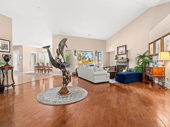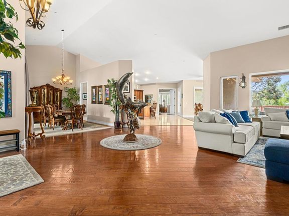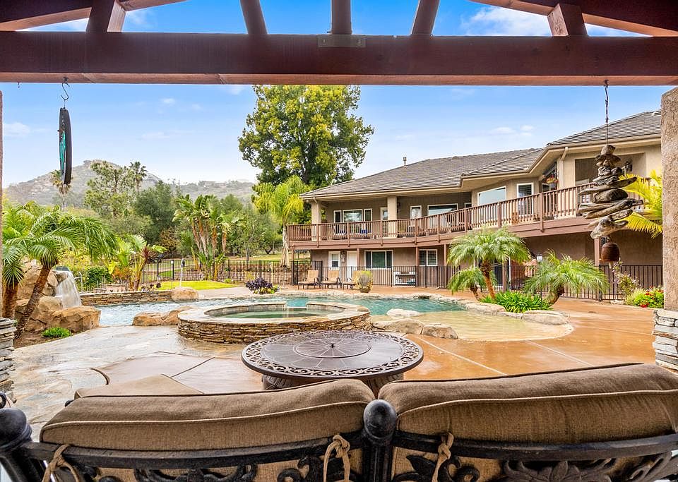 Beautiful estate in the Poway hills! This gorgeous home can live as a one story with multiple living spaces, open kitchen and luxurious primary suite. Enjoy the grand entrance, cathedral ceilings and large windows with covered deck to appreciate the peacefulness. In the upstairs wing there are two large bedrooms with private decks that share a large bathroom for privacy. Downstairs is all the fun with media room, gym, large game room, bar, and another bedroom suite! Resort pool with baja shelf, spa and cover dining area has outdoor kitchen and fireplace. Putting and chipping green, archery area, tree swing, all the freedom of 2 acres. Owner does pay for pool and gardener. This home is furnished or not... owner is flexible. PUSD Schools Owner pays landscaper and pool service. Can be furnished or unfurnished