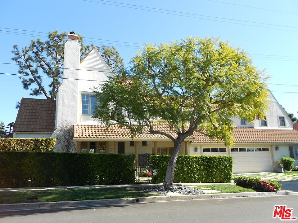 Some ocean views highlight this stately French Country home situated in a prime bluff neighborhood of Pacific Palisades.The interior features a stunning living room with original beamed ceiling and cozy fireplace, a staircase with original tiles, large eat-in kitchen equipped with top-of-the-line appliances, spacious formal dining room, family room with built-in shelving/entertainment center, reading room and an office with built-ins. The home boasts four spacious bedroom suites, including master with dual walk-in closets and sitting/exercise room. One of the bedroom suites has its own separate entrance. A private backyard hosts a swimming pool and spa, a built-in BBQ, cabana-style shade area and a built-in basketball play area. Additional amenities include gorgeous hardwood floors, original bathroom tiles and an upstairs laundry room as well as a laundry in the three-car garage which offers plenty of storage and workbench area.