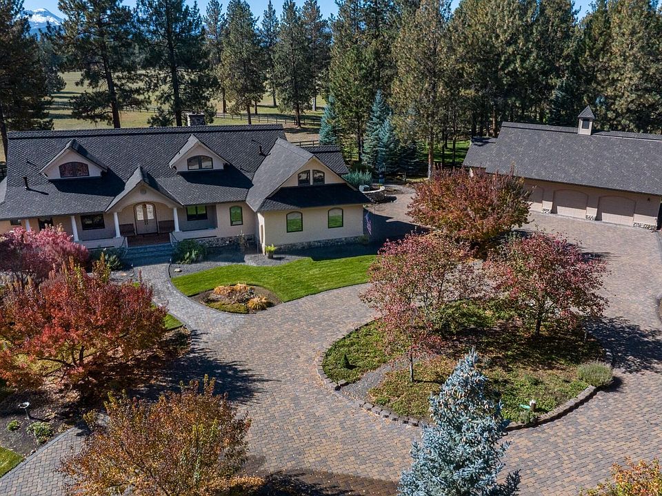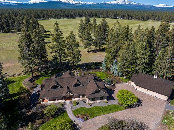 Mountain living perfection in a premier equestrian community. Stunning Cascade Mountain Views from the custom home that is 4,448 sq ft, 4 beds, 5 baths, main floor living. Exquisite woodwork, soaring vaulted/beamed ceilings and Montana River rock fireplaces create a welcoming ambiance. Chef's kitchen: Thermador 6-burner, stainless appliances, walk-in pantry. Large Primary Suite with soaking tub and gas fireplace. Versatile bonus rooms ideal for hobbies, quilting or office. Attached 2 car garage with 1/2 bath. Detached 1510 sq ft 3 car/shop with workshop area and upstairs finished bonus room. New Roof, redwood siding, covered cedar decks, landscaped yard with tranquil waterfall/pond enhance outdoor living. Situated on 2.29 private acres in gated Cascade Meadow Ranch. Enjoy clubhouse, tennis, ponds, 3 RV spots, horse stalls, paddocks, indoor/outdoor arenas and borders public land with easy access for riding or recreational activities to enjoy any Central Oregon lifestyle!