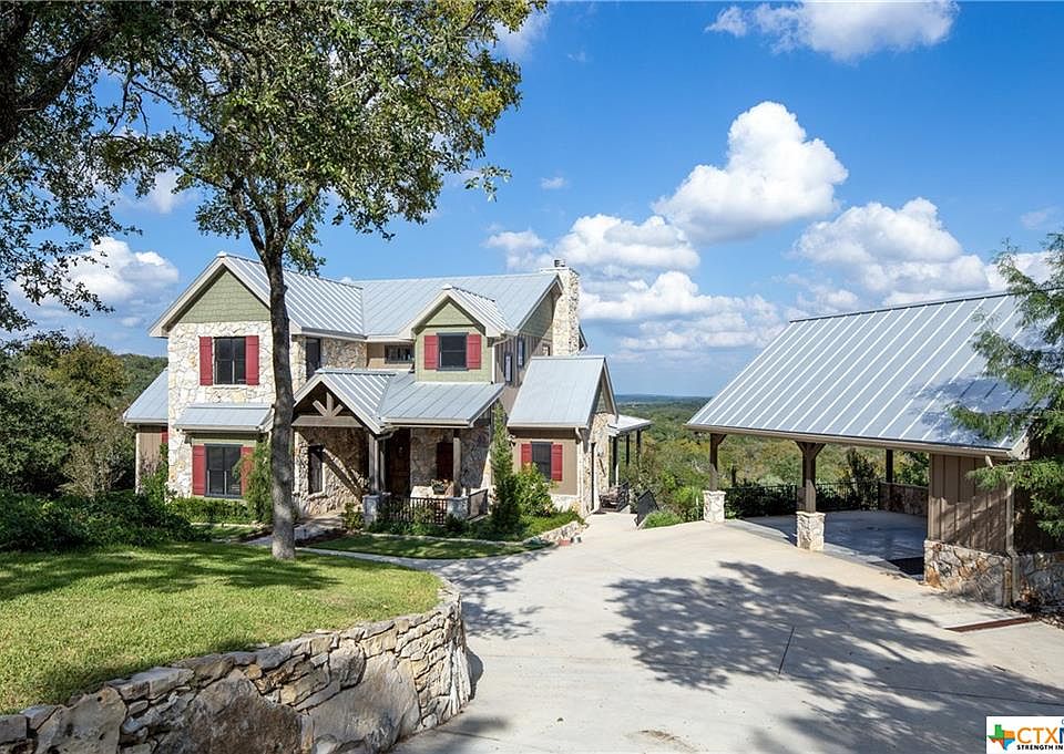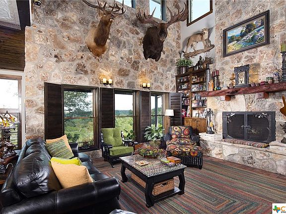 Rocky Top, in a word, is majestic. From its stunning home, built with fieldstone taken off the property to the breathtaking views in every direction, this property was built with the greatest of concern for detail and perfection. Main home is 2 bedrooms, 2 1/2 baths w a large office that could be converted to 3rd bedroom.The home features 1890's era railings from a barn in Canada, Pine ceilings, alder custom cabinets, rock walls and lighting throughout the landscaped yard and with incredible views from the covered porch. There is a separate guest quarters w kitchen, living area, bedroom and full bath and a 2000 Sq.Ft custom barn and a 30,000-gallon rainwater collection for living quarters with a backup well. The 44 cleared acres are cleared of cedar and have a variety of trees including Oaks, Elms, Walnuts, and Buckeyes. There is a small seasonal creek with a park-like setting on the south end of the property. The land has a current agricultural exemption.