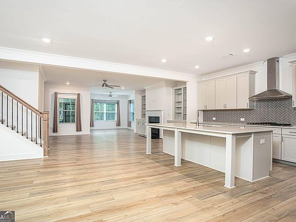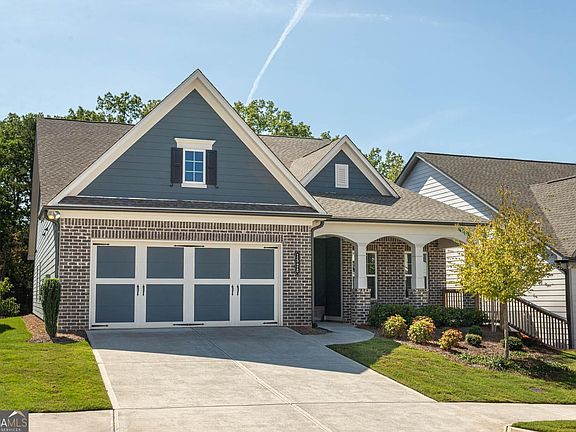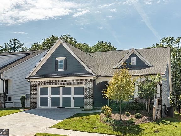 Welcome to the popular "Crestwood" floor plan in Hickory Bluffs, one of Canton's premier active adult communities. This beautifully designed home features 3 bedrooms, 3 full bathrooms, and a layout is perfect for both everyday living and entertaining. At the heart of the home is a chef's kitchen, showcasing stylish light gray cabinetry, quartz countertops, a herringbone tile backsplash, stainless steel appliances including a gas cooktop and wall oven, and a huge island with bar seating. The large walk-in pantry ensures you'll never run out of storage. The kitchen opens to the dining area, which offers space to comfortably seat up to 12 guests, and flows seamlessly into the living room where built-in bookshelves and a cozy gas fireplace create a welcoming gathering space. Just off the living room, you'll find the perfect spot to relax with a book or enjoy a drink with friends while watching the sunset through oversized windows enjoy the views of trees. The primary suite is conveniently located on the main level and features tray ceilings, peaceful backyard views, a spacious walk-in closet, and a spa-like bathroom with a zero-entry tiled shower, frameless glass doors, double vanity, and linen storage. Additional living spaces include a versatile den, ideal for a home office, and a spacious upstairs loft that's perfect for movie nights or game days. Plus two additional guest bedrooms, one on the main living and one upstairs. Outside, you'll enjoy a private fenced backyard with mountain and tree views, providing both beauty and privacy. Living in Hickory Bluffs means more than just a beautiful home-it's a lifestyle. The gated community includes lawn care, a clubhouse with resort-style amenities, swimming pool, pickleball and tennis courts, and a wide variety of activities such as fitness classes, craft clubs, book club, veteran meet-ups, Mahjong, and more. Conveniently located near shopping, dining, medical facilities, and I-575, this home truly has it all. Don't miss your chance to own this sought-after Crestwood floor plan in one of Canton's most desirable active adult communities!