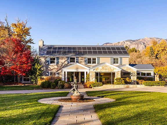 A rare opportunity to own an extraordinary property located high on the east bench in one of Ogden's most coveted neighborhoods. This estate-like residence is distinguished by its exceptional grounds-lush landscaping, exquisite rose and flower gardens, and towering mature trees-all thoughtfully designed for both relaxation and entertaining. Set on a full acre, the property offers refined outdoor living at its finest. A gracefully terraced backyard is centered with a dramatic waterfall, koi pond and stone fire pit. The flagstone patio off of the kitchen invites unforgettable seasonal gatherings with its built-in grill, stone pizza oven, and striking outdoor fireplace-all framed by a majestic mountain backdrop. Built in 1937 and tastefully updated over the years, its historic character and charm remain. The layout and living spaces are elegant and sophisticated, yet warm and inviting. Oversized windows flood the interior with natural light, blending the beauty of the surrounding gardens and views seamlessly with the interior. You are welcomed by an impressive foyer with marble tile floors, intricately carved columns, and a sweeping staircase. The grand living room centers around a commanding fireplace and opens through French doors to a year-round sunroom. A serene den with a fireplace overlooks the changing seasons showcased in the backyard, and a spacious formal dining room provides the perfect setting for holiday gatherings and special occasions. The central hub of the house is the chef's kitchen and adjoining family room featuring marble and granite countertops, a center island, high-end built-in stainless-steel appliances, custom cabinetry, a wine bar, and a beverage fridge. Throughout the home, hardwood flooring, custom millwork, coffered ceilings, picture rail molding, and detailed carvings elevate the craftsmanship and charm. Upstairs, a generous primary suite offers a spa-like bathroom with a heated soaking tub, steam shower, elegant vanities with ornate fixtures and leads to an adjoining bedroom that creates a separate dressing area. Additional bedrooms, a full bathroom, and a potential laundry area complete the upper level. The lower level includes a family room, fifth bedroom, bathroom, sauna, and storage areas. A detached three-bay garage with additional storage room completes this exceptional offering. The property is steps from mountain trails and just minutes from historic downtown Ogden. Steeped in history and timeless beauty, 1528 Maule Drive awaits its next steward to define its future.