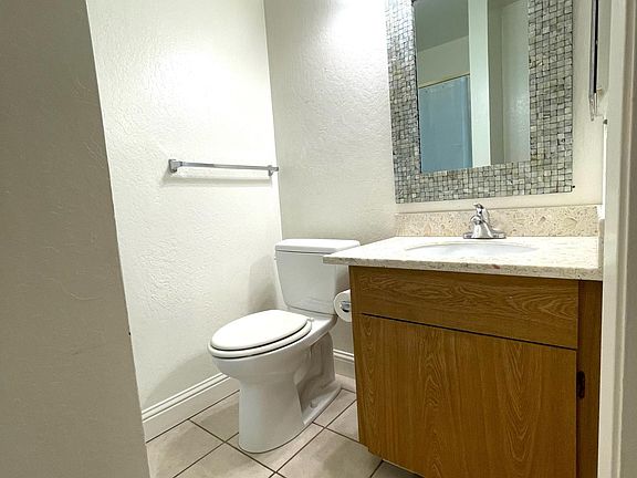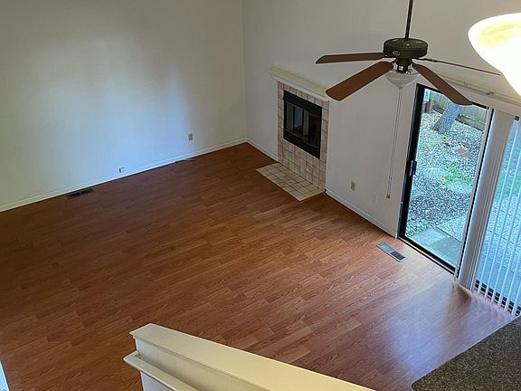 Newer window coverings, LED lighting fixtures and ceiling fan over the dining area. Pergo flooring & tile throughout with gas fireplace. Spacious closets with extra storage. Balcony off master bedroom. Small fenced backyard patio & front entry foilage to be maintained by the tenant.