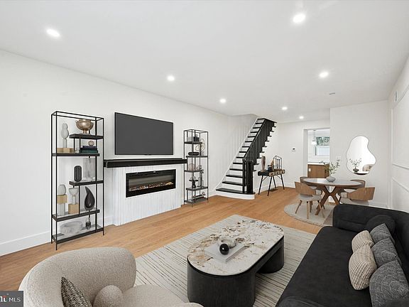 Welcome to 1528 Manton Street — a beautifully remodeled rowhome located on a quiet, charming block in the Newbold neighborhood of South Philadelphia. This two-story brick home has been thoughtfully updated with modern finishes while maintaining classic Philadelphia style. Step inside to an open-concept living and dining area featuring warm hardwood floors, recessed lighting, and a sleek electric fireplace. The bright and airy layout flows seamlessly into the dining space and a stylishly renovated kitchen with contemporary cabinetry, quartz countertops, and stainless-steel appliances — perfect for everyday living or entertaining guests. There is also a half bathroom located conveniently in between the dining space and kitchen. Upstairs, you’ll find two spacious bedrooms and two full bathrooms with elegant tile work and modern finishes. The finished basement offers an additional living area ideal for a home office, gym, or guest space, along with a laundry area. Outside, the home’s crisp white brick façade with black-trimmed windows and charming flower boxes creates inviting curb appeal. Located just steps from popular local spots, parks, restaurants, and public transit, this home offers the perfect blend of modern comfort and vibrant city living.