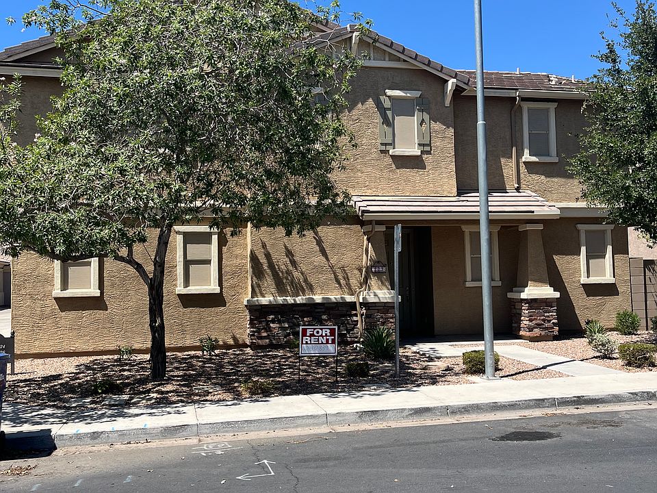 Close to Falcon Field, beautiful 3 bedrooms plus den, plus bonus room/loft in newer Coppercrest community. Impressive kitchen great room opens to covered patio through double sliding doors. With both doors open it makes the patio feel like an extra room. Walking distance shopping and dining. Community pool short walk away. All appliances including washer and dryer. 2 car garage
