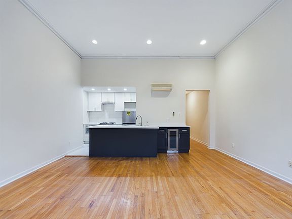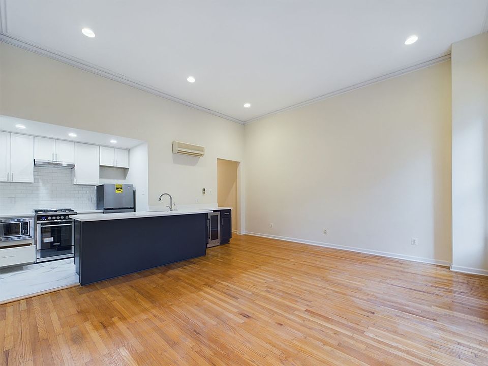 Classic renovated 1 bed, 1 bath unit in a converted Brownstone. Enter into the unit's wide gallery hallway which houses a laundry closet equipped with a stackable washer and dryer. The large bedroom and full bathroom are off to the right and includes a nice sized closet, a tall built-in chest of drawers and a 3 piece bathroom with a tub/shower. A window in the bedroom faces south. The completely new custom kitchen and wet bar includes shaker style cabinets, new stainless steel appliances, quartz countertops and a wine fridge perfect for entertaining. High ceilings finished with crown molding make the space feel grand and open. Three large north facing windows overlook Pine Street and allow sufficient natural sunlight to fill the living/kitchen area. Radiator heat and mini-split A/C. Pet friendly Tenants are responsible for gas and electricity.