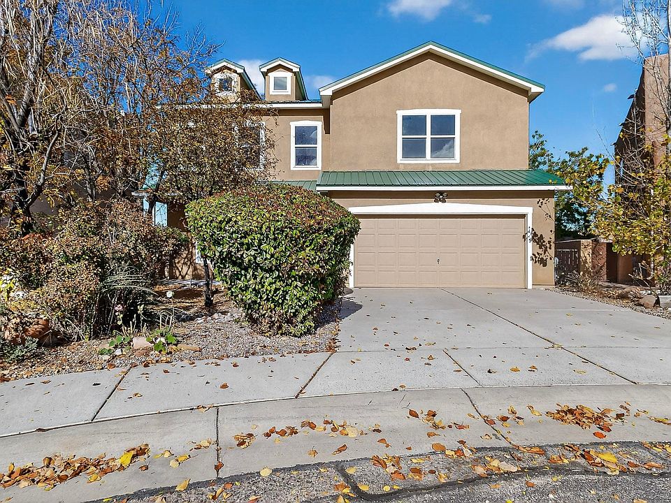 Beautiful, move-in ready, Northern New Mexico style home in gated community. This home has been wonderfully maintained and freshly painted. It has a recent HVAC system with refrigerated air & a new garage door opener. It features a gorgeous, updated kitchen with high-end stainless-steel appliances (check out the fancy icemaker that makes round cubes), granite counter-tops, and designer tile backsplash. The living room has a fabulous gas-log fireplace for cozy evenings. Upstairs is a huge family room, and each bedroom is large and has its own walk-in closet. The sellers enjoyed years of entertaining on the beautiful back patio with a covered porch and lots of greenery. Don't miss the huge closet under the stairs for extra storage. This is a great North Valley property at a terrific price!