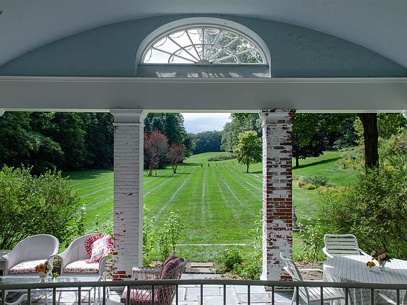 Extraordinary opportunity to own one of the 'finest homes in the Upper Valley' formerly known as 'Gilnocky Farm' located in Windsor, the 'Birthplace of Vermont' is private yet convenient to I-91. This home built in 1810 has a wonderfully understated Federal exterior; the interior which was later renovated in the Georgian Revival style, offers 9352 sq ft of living space. Character abounds in large rooms, accented by beautiful 'wavy glass' windows complete with Indian shutters & 'pumpkin pine' floors original to the house. The subtle detail of fine craftsmanship is evident throughout. 10' ceilings, natural light, a lovely foyer, 6 fireplaces, 6 bedrooms, 7 baths, a south facing porticoed porch overlooks the 217.82 acres offering an in-ground pool, 6 car garage, stables w/ 9 stalls, 3 bay closed equipment shed, tennis court, perennials, lawns & pastures, woods and 4-5 miles of equestrian trails. Property is served by town water & sewer, enrolled in the VT current use program and conserved with Upper Valley Land Trust.