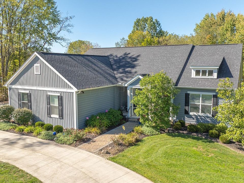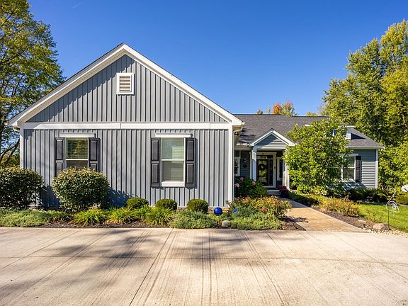 Welcome home to this stunning custom ranch on 2+ acres in the Big Walnut School District. Surrounded by mature trees and beautiful landscaping, this home offers peaceful living with convenient access to Sunbury, Galena, and Polaris. The open-concept main level features vaulted ceilings, abundant natural light, and a chef's kitchen with granite countertops, a large island, stainless appliances, double ovens, and stylish pendant lighting. The bright four-season room with walls of windows overlooks the private backyard, providing the perfect spot to relax or entertain. The spacious primary suite includes a walk-in closet and private bath with dual sinks, granite counters, and a vanity area. Two additional bedrooms and a full bath complete the main level. The walkout lower level offers a large recreation area, plenty of storage, and access to the patio and upper terrace—ideal for outdoor dining & summer gatherings.
