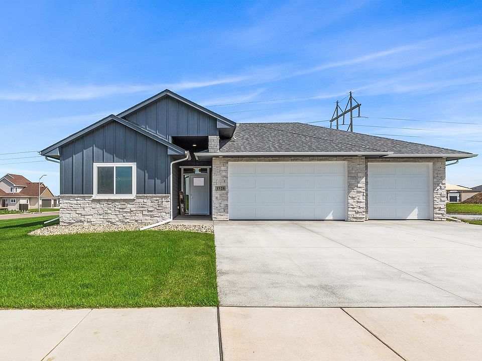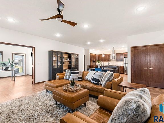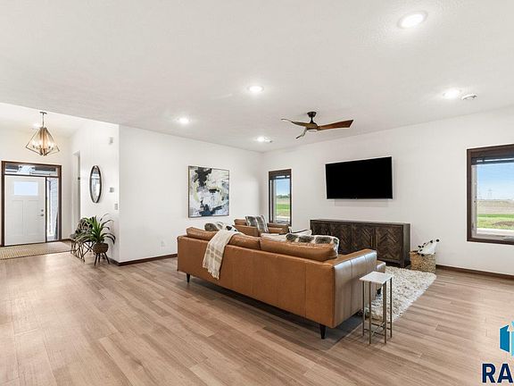 Over 1920 SQ ft and under 500k!! Careful consideration was put into this design and layout maximizing square footage at an affordable price. With 3 beds PLUS a sunroom, there is all the right space in all the right places! The generously sized front foyer leads to 2 bedrooms and a bathroom perfectly separated from the primary suite. Living, dining and kitchen flow effortlessly in an open concept layout, allowing for ease of daily living. Off the living room are glass french doors opening to a spacious den/sunroom and a door to the back patio. The primary suite is large, w/a spacious bath and very generous WIC. Wood blinds compliment the large windows and natural light. There is a separate laundry space, mudroom drop spot and oversized 3 stall garage fully insulated and plumbed for heat. All this tucked on a quiet circle with high end single family executive homes protecting your investment. This home is perfectly situated in the Bluffs of Brandon near the Big Sioux Rec area.