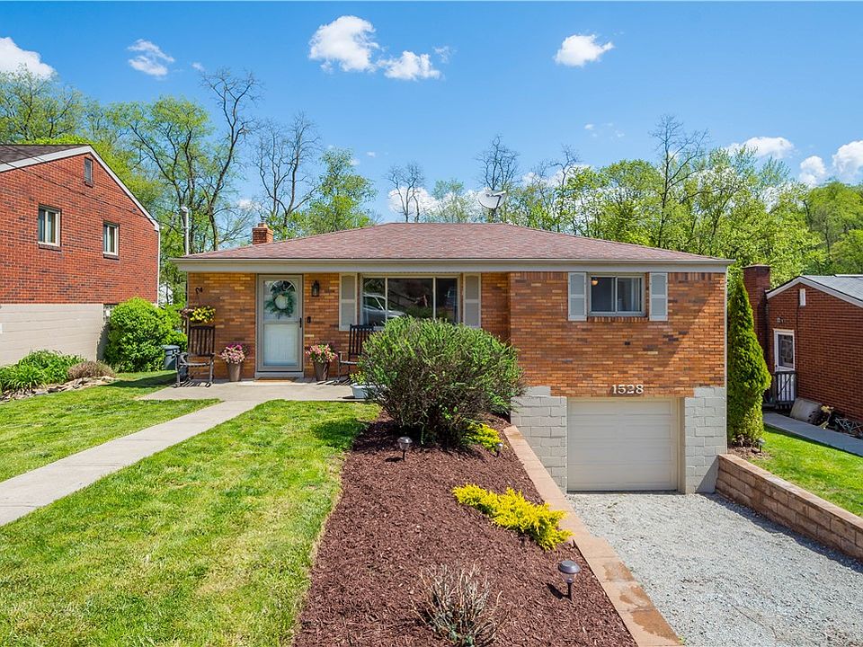 Welcome Home! You'll be delighted with your well-built brick ranch located in South Park Township! Landscaped and well maintained. When entering, you will be pleased with your large living area accented with beautiful gray walls. Adjacent from your living area, is your kitchen with a pristine eat-in. Excellent for family dinners and holiday gatherings. Additionally on the main floor, is your common bath (tastefully updated) and two ample sized bedrooms. Downstairs, you will find a large finished basement with LVT flooring. Use the space as you desire. Enjoy your laundry room and additional storage room (the additional storage room is separate from the laundry room & can be easily converted into a half bathroom [plumbing accessible]). You can access your patio, pool, and backyard from your basement (walk-out). Extremely convenient and perfect for entertaining. All kitchen appliances included**, Washer & Dryer included**, Home Warranty Included**!