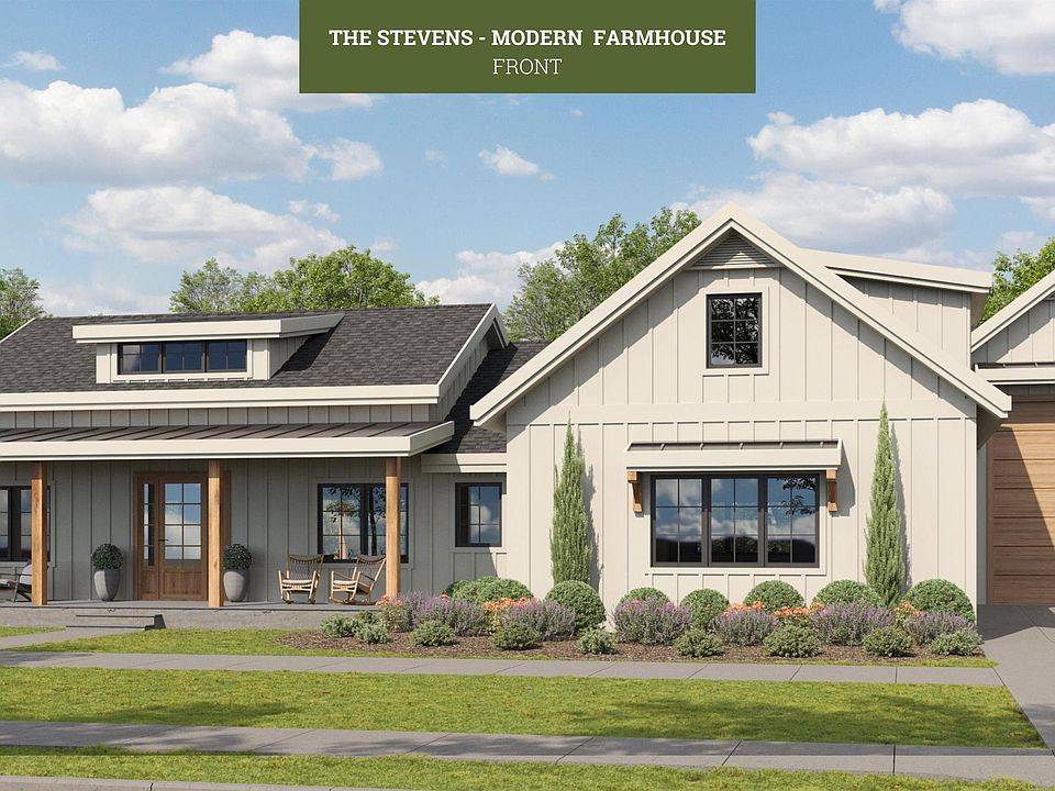 The Stevens is a modern country home with a charming covered front porch. Its vaulted great room is bathed in natural light from carefully placed windows, offering serene views throughout. The split-bedroom layout is centered around a spacious great room with a striking wall of windows, while an upstairs bonus room adds flexibility for work or leisure. Standard features include 8' doors, a gas fireplace in the great room, quartz kitchen countertops, Bosch stainless steel appliances, LVP flooring, and premium carpet. Smart home upgrades like a Ring Doorbell and Nest Thermostat add convenience, while a gas line stub on the back patio makes outdoor cooking easy. A 50' RV garage provides ample storage. Located in Middleton’s Waterbrook Farms, this exclusive community features 26 homesites in a peaceful country setting, just moments from Purple Sage Golf Course.
