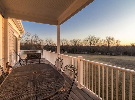 BRING OFFERS!! This amazing 4800 sq. ft home, wrap around porch, sits high on 16+ acres with stunning views. 9ft ceilings, main level laundry and a cedar closet. Kitchen cabinets have pullout drawers & Corian counters. Outdoor speakers, storm cellar/safe room, zoned heating/cooling & security system. It's stubbed for HVAC. Crown molding in living room with large stone fireplace, adds to this homes grandeur. Level II - game room, wet bar / granite countertops & wood burning stove for comfort. To much to mention.