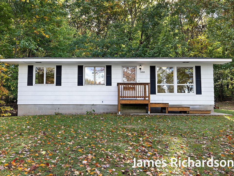 Welcome home to this cozy 3 bedroom, 1.5 bath ranch. Set back off the road and nestled on a private 4.7 acre lot, this home offers a blend of privacy, natural surroundings and convenience. Designed for durability, the exterior boasts cement board siding that stands up to the elements. Inside, beautiful hardwood floors flow throughout the home complemented by original hardwood doors, trim and window casings adding warmth and character. The main floor laundry adds efficiency and ease. Featuring a walk-out basement, there are endless possibilities for additional living space, storage and recreation. A spacious deck and expansive yard provide the perfect setting to unwind outdoors. This property is ideal for those seeking space while remaining close to Grand Haven's amenities.