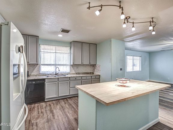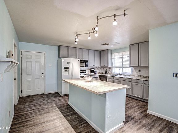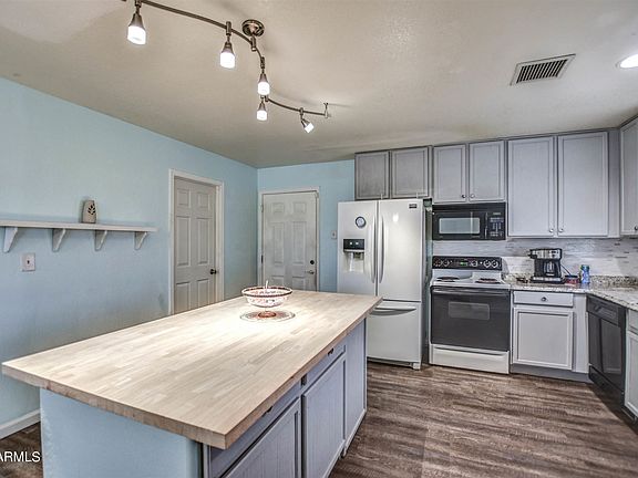 This adorable home is ready for you to love it! Recently remodeled kitchen, new countertops, island with new butcher block top, backsplash, painted cabinets, all kitchen appliances convey. New flooring, updated bathrooms. Separate laundry room, water softner system. Separate family and living rooms. Back yard is gardener's paradise. Many green healthy plants, fruit trees, grape vines storage shed, full length covered patio and artful block walls.