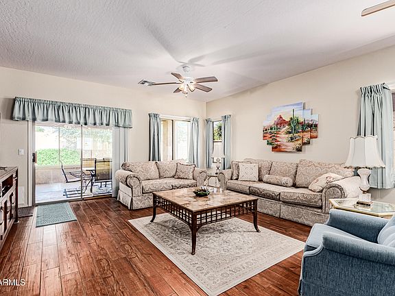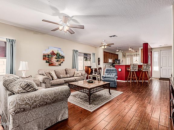 Great Opportunity and a Must See. This wonderful 3 Bedroom 2 Bath home located close to the Baseball Stadium and Community Park. As you enter the home you will notice the wood tile flooring and the open great room floor plan. Continue to the Eat-In Kitchen with the bay window perfect to join the Arizona Sun. Kitchen also features a pantry, Breakfast Bar and plenty of Counter Space. The split Primary Bedroom has a walk-in closet and a Primary Bathroom complete with Dual Sinks, Separate Tub and Shower. As you continue to the Backyard you are greeted by a Screened in Arizona room and continue out to the wood deck with Hot Tub great for enjoying the Arizona Fall/Winter weather. Home also features Cabinets in laundry room and Garage. Home is ideal as a 2ndhome or possible short term rental.