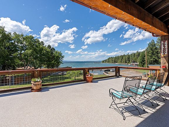 Stately fireplacePrivate dockFar-reaching mountain viewsExpansive deckLakefront homeRare flathead lake accessRaised garden beds