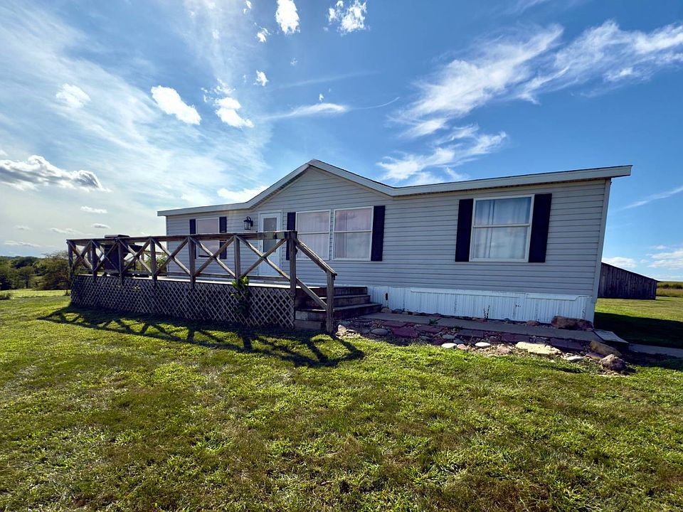 Looking for the quiet country life? This manufactured home sits on 2 acres just off a dead end road. It features 3 bedrooms, two bathrooms, an eat in kitchen and open living room. There is a small machine shed/ garage with a raised storage area and tall overhead doors. You can sip your morning coffee from the semi- wrap around deck and watch the sun rise or set while soaking up the beautiful view.
