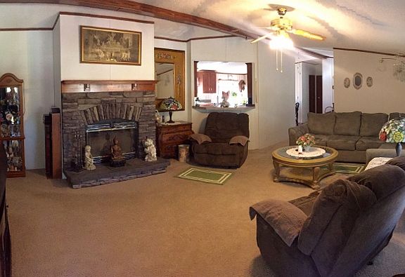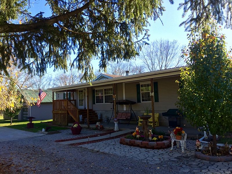 This well maintained double-wide home sits in a great location, right outside of town but close to it all. Steps away from Dows Roller Arena and close to the Fun Barn and Movies Ten. This house would make a wonderful family home for anyone. When you walk through the front door you will notice the beautiful wood burning fire place in the large sized living room. The dining room flows right through to the eat-in kitchen that is equipped with newer stainless steel appliances. The spacious master bedroom has a nice sized closet, walk-in shower, double vanity, and a great garden tub to soak in. You will find two adequately sized bedrooms down a small hallway off the kitchen along with an additional full bathroom. There is a mudroom/ Laundry room off the kitchen where you can access the huge fenced in back yard that is lined with trees that will give you privacy. There is also a one car garage with a workshop attached to the back and a two car canopy to protect your vehicles. Addit