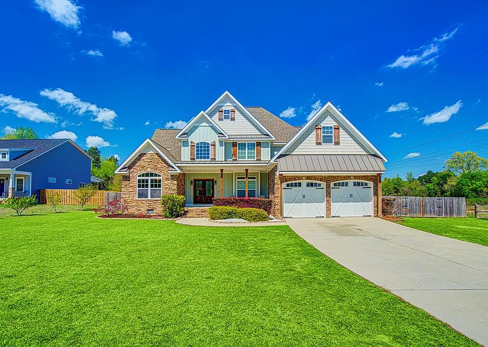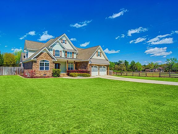 #CustomBuilt This custom built home has tons of upgrades and lots of rich molding features throughout. Relax on the rocking chair front porch (10x8) that has wood stained columns and stone steps leading to it. This home has a 30 year architectural shingle. Walk into the foyer where you would find true hardwood floors throughout the home. The great room features vaulted ceilings & a fireplace with a wood mantle.The kitchen has custom stain wood cabinets, corian counter tops, island with a pot filler, custom tile back splash, & a bar top that seats 5. The master bedroom has tray ceilings, recess lighting and a door that leads to the back patio. The master bathroom features custom tiled shower, garden soaker tub, oversize walk in closet, dual vanity sinks with framed mirrors. Upstairs you will find 2 bedrooms, office, & a bonus room. There is also a balcony that overlooks the great room. Enjoy a nice barbecue in the large fenced in backyard with covered back porch.