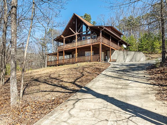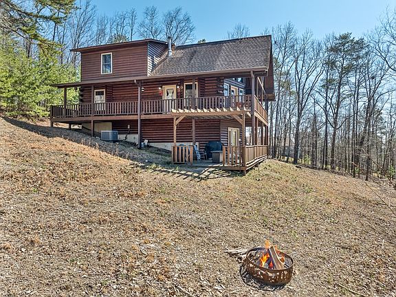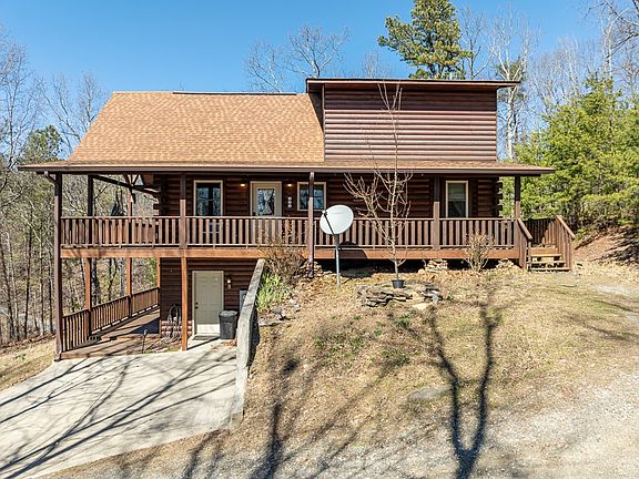 Escape to this true log cabin mountain getaway, located in the amenity-packed Talking Rock Creek Resort. Situated an hour from Atlanta & Chattanooga, this charming cabin with tons of outdoor living space can be your retreat from the hustle and bustle with 2 bedrooms and a flex space (currently used as third bedroom). The home has an attractive prow-front design, with a wrap-around porch and attached pergola area perfect for grilling, plus a fire-pit spot to enjoy the serene wooded surroundings. Inside, find cozy wood finishes throughout the open floor plan great room with plenty of space for relaxing around the warm wood stove. Tons of windows and French doors let in the sunshine. The kitchen is well-laid out for cooking your favorite meal and includes breakfast bar seating. The main floor also has a roomy bedroom with wood & drywall finishes, plus a spacious bathroom with separate soaking tub and tiled shower. Head upstairs to the private master retreat with a large bedroom with vaulted ceilings and en-suite bathroom plus a walk-in closet. Downstairs, find a fun basement level bonus area finished with a corrugated metal roof, double French doors, ping pong table, and an electric fireplace to add to the ambiance. There are two additional sleeping spaces, one with bunk beds, providing room for all your guests or family. The 5,000 acre Talking Rock Creek Resort features plenty of recreation activities, including a stocked fishing pond, rec center, two pools, tennis, and hiking. Being offered turn-key, this home is primed for you to use as your personal getaway or as an investment. If you are ready to enjoy the peaceful serenity this classic log cabin offers along with the amenities and nature, come see it today!