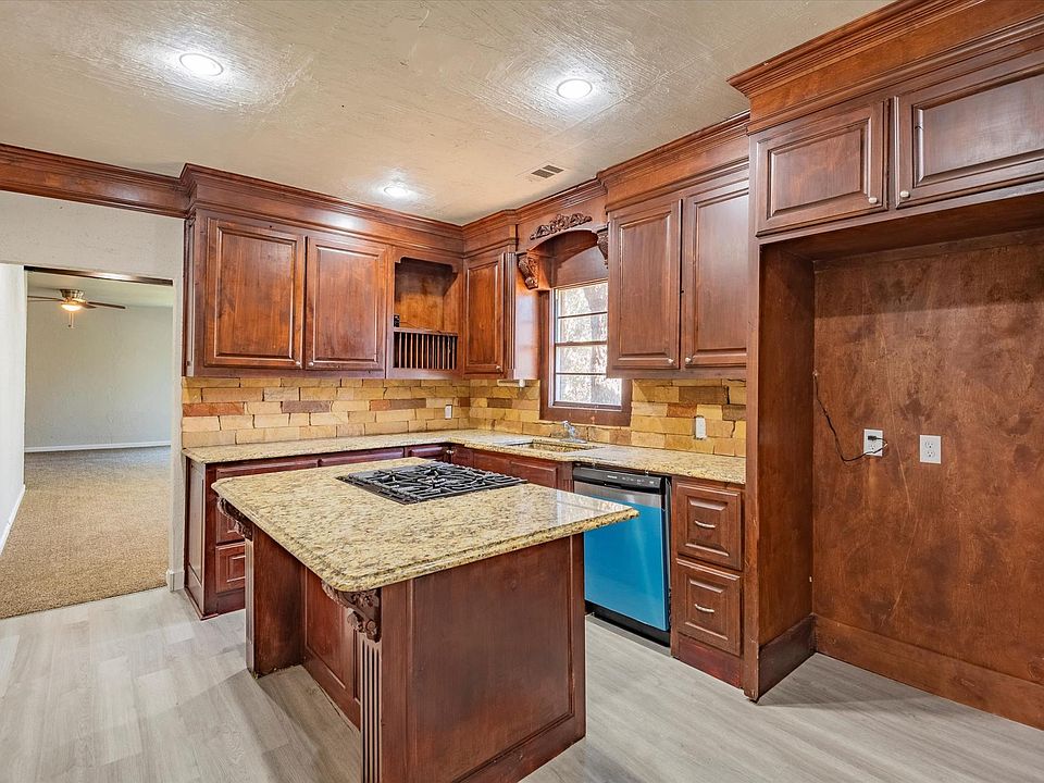 Cozy and recently renovated family home on a corner lot, brand new HVAC system, with large rooms and many windows. Three spacious bedrooms, an open concept living room and contiguous dining room, a remodeled kitchen with granite countertops and several dark color cabinets for storage. The home has been recently renovated including a new roof, two new porches (front/back), new flooring throughout, freshly painted, new fans and fixtures, and new appliances in the kitchen. Large fenced back yard is great for barbecues and family gatherings. In the heart of Corsicana near shopping and schools, but on a quiet street adorned by beautiful mature trees.