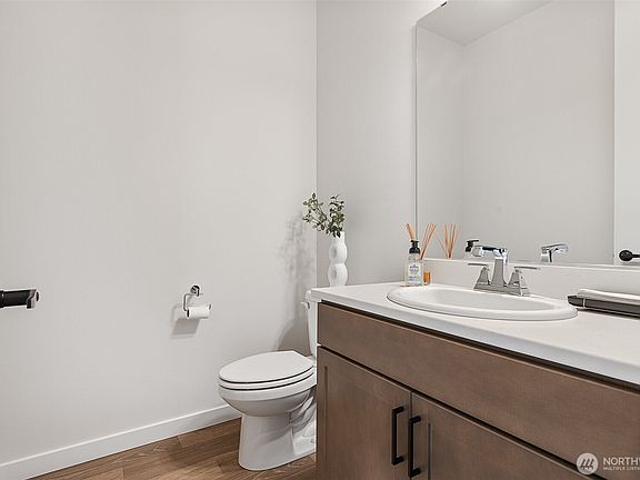 Boise Creek Cove in Enumclaw, a Fabulous New Home Community of 18 homes by Award Winning Builder, JK Monarch. Semi-Custom Built 1-story home featuring quartz counters, 8' doors, 5" base millwork, etc. Great room w/tile surround fireplace flows to the Chefs kitchen featuring SS appliances, spacious island & soft-close cabinets. Dining room opens to covered patio w/natural pine ceiling. Primary bedroom features ensuite w/2 sinks, freestanding tub & walk-in tile/glass shower. Partially fenced, front landscaping, heat pump (A/C) & washer/dryer. Enumclaw’s newest community, where small-town charm meets modern living. Conveniently located to amenities plus a wonderful dog park close by! Presale, photos of similar home, colors & finishes may vary.