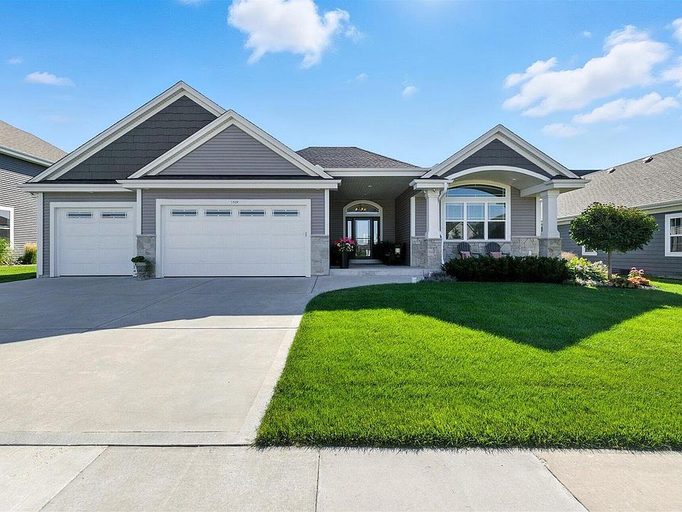 No need to build when you can buy this Briarstone Signature Series ranch by Kaerek w/custom features & finishes in highly desirable neighborhood of Prairie Creek Ridge! Entertaining possibilities are endless from main level open concept layout to LL rec room spaces. Kitchen/dinette boasts generous island w/quartz countertops, white cabinets w/crown molding, vaulted ceiling, stainless steel appliances & LVP flooring. Cozy up in spacious living room area w/vaulted ceiling & Gas Fire Place. Primary Bedroom suite offers Vaulted Ceiling, LVP Flooring, & generous WIC. PBR bath features corner ceramic tile walk-in shower, dual shower heads & double quartz top sinks. Every square inch of LL is utilized for optimum potential featuring wood beams & bar area. Don't forget 3 garage & outdoor space!