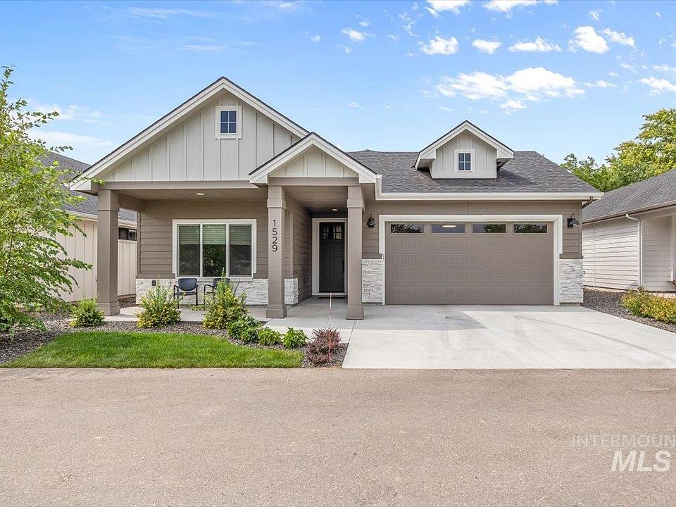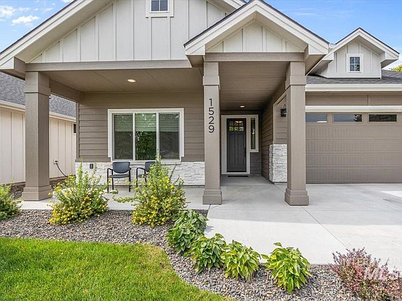 Price improved! Better than new! Stunning Ted Mason New England cottage style home nestled in the heart of Meridian in sought after Cherry Blossom Place. Less than 1 year old with upgrades. Pride of ownership shows throughout this well-maintained home. Won't last long. Do not wait to see this exceptionally fine home for yourself. High end finished and Bosch appliances. Features you won't find anywhere else at this price. Large butler's pantry, spacious laundry room, finished garage with epoxy floor, outlet for electric car, Covered front and back patios, and very low maintenance yard. Expensive upgrades like leaf guard gutter protectors, high end water softener, hot water circulation pump, security lights, and window film to keep the interior cool in summer.
