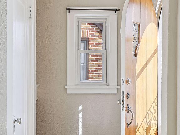 Vintage plaster walls, plaster arches, coved ceilings, arched door.