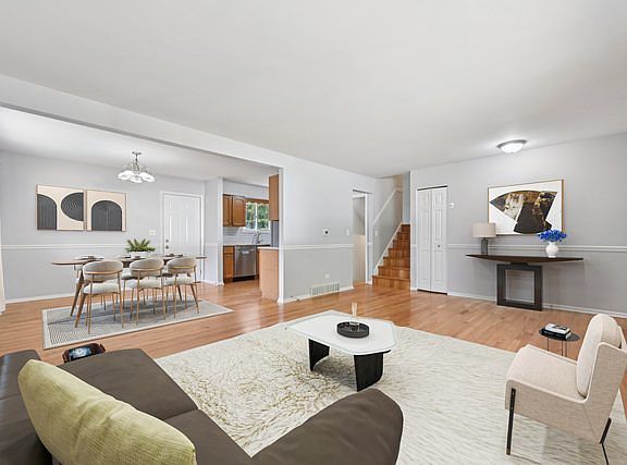 Welcome to this inviting 3-bedroom, 1.5-bath split-level home. The first floor offers hardwood floors throughout, a bright living room that flows into the L-shaped dining area and a kitchen complete with granite countertops, stainless steel appliances & tiled backsplash. All three bedrooms are on the second floor with hardwood floors, spacious closets and share the updated hall bath. The finished English basement features durable vinyl plank flooring throughout, a family room, half bath, and a large laundry room with plenty of extra storage. Enjoy the outdoors in the fully fenced shady backyard with a patio, perfect for gatherings or relaxing in the shade. Additional highlights include a 1-car attached garage. Located in a wonderful neighborhood just blocks from highly rated Munhall Elementary, this home is also close to multiple parks and the Fox River, offering endless recreation and natural beauty. A fantastic blend of comfort, convenience, and lifestyle awaits!