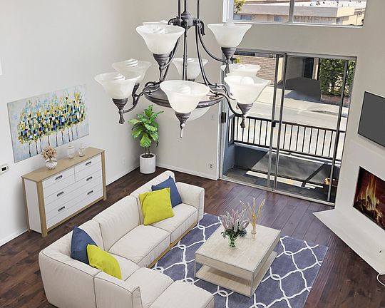 A fantastic upper loft-style residence with amazing 20-foot high ceilings and huge windows. The upper level has a bedroom-workspace with an additional bathroom and a private outdoor terrace with city light views. Hardwood floors throughout this tastefully remodeled home. The kitchen has modern appliances including a refrigerator, stove, dishwasher, microwave, and stone countertops. The bedroom is spacious with great closet space. The bathroom has a large walk-in shower and modern sink vanity unit. The apartment has central air conditioning and heat. There is a shared laundry in the building and a secure two-car parking space. This is a secure access building and pets may be considered.
